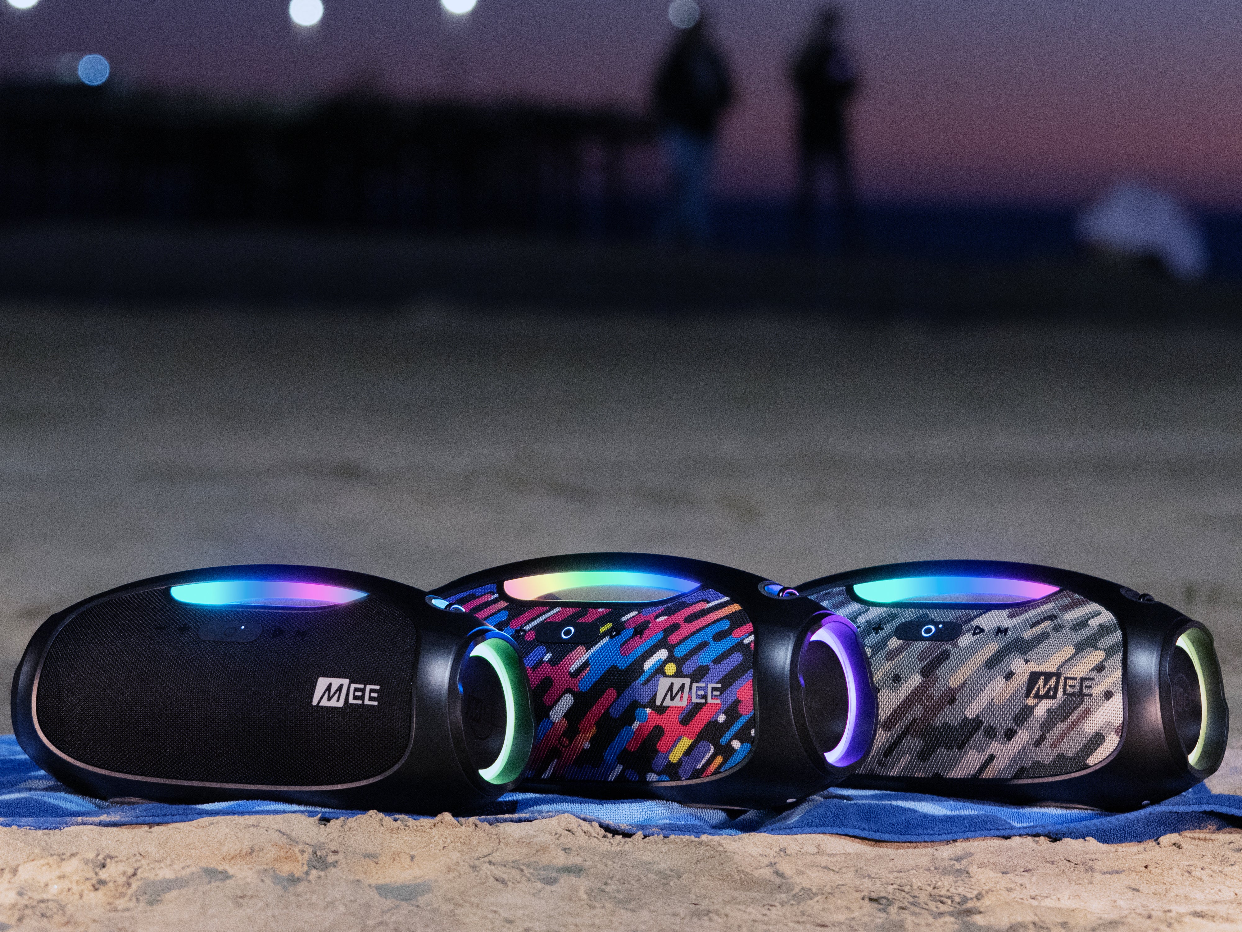 Bring your party to life! The MEE audio partySPKR features 8 different LED light modes, MEE signature sound with 3 unique audio modes, and Party Mode, which lets you connect up to 1000 partySPKRs together to play in sync.
